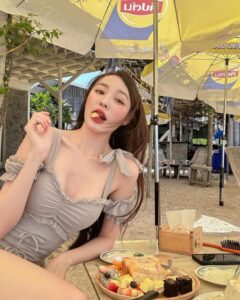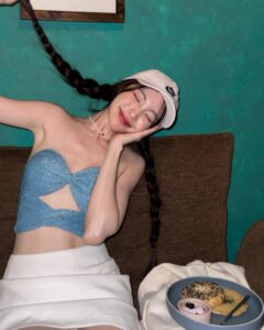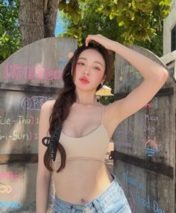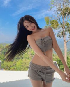 ถ่ายเล่นในรถ กับเสื้อกีฬาบาร์ซ่า ที่ออกแบบทรงผู้หญิง แบบครึ่งตัว อวดหน้าท้องขาวมาก ไอจีน้องจะลงรูปไว้เยอะเลย อย่างลุคนี้เหมือนจะเตรียมตัวออกไปเที่ยวด้วยการใส่เสื้อคลุมสีน้ำตาลแบบซีทรูมองทะลุกันเลย แต่ว่าข้างที่ใส่บราสีดำ กับบิกินี่สีเดียวกัน เด็ดมาก ยังไม่หมด น้องยังมาพร้อมกับท่าเต้นสุดน่ารักอีกต่างหาก เห็นแล้วสารภาพเลยว่าคิดดีไม่ได้จริง ๆ