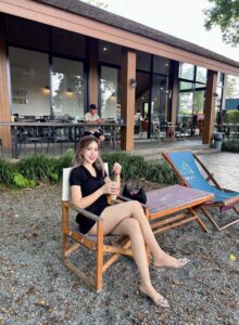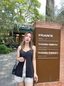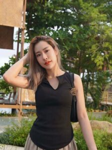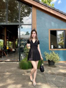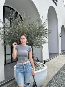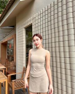 แบบสาววัยทำงานมาก อย่างลุคนี้ที่เหมือนจะไปงานแต่งใครนี่แหละ ด้วยเดรสสีชมพู เปิดไหล่ข้างหนึ่ง สวยน่ารักจริง อีกมุมได้ฟีลสาว เซ็กซี่ ขี้เล่นต่อกันด้วยคอนเทนต์ในไอจีกันต่อเลย จัดว่าเด็ดมาก ที่ชอบสุดก็น่าจะเป็นคอนเทนต์อันนี้ที่น้องชอบถ่ายเล่นตอนไปเที่ยวคาเฟ่ในวันหยุด ก็จัดเลยด้วยเสื้อสายเดี่ยวลายลูกไม้สีดำ เสื้อยีนส์คลุม ดูมีทรงจัด